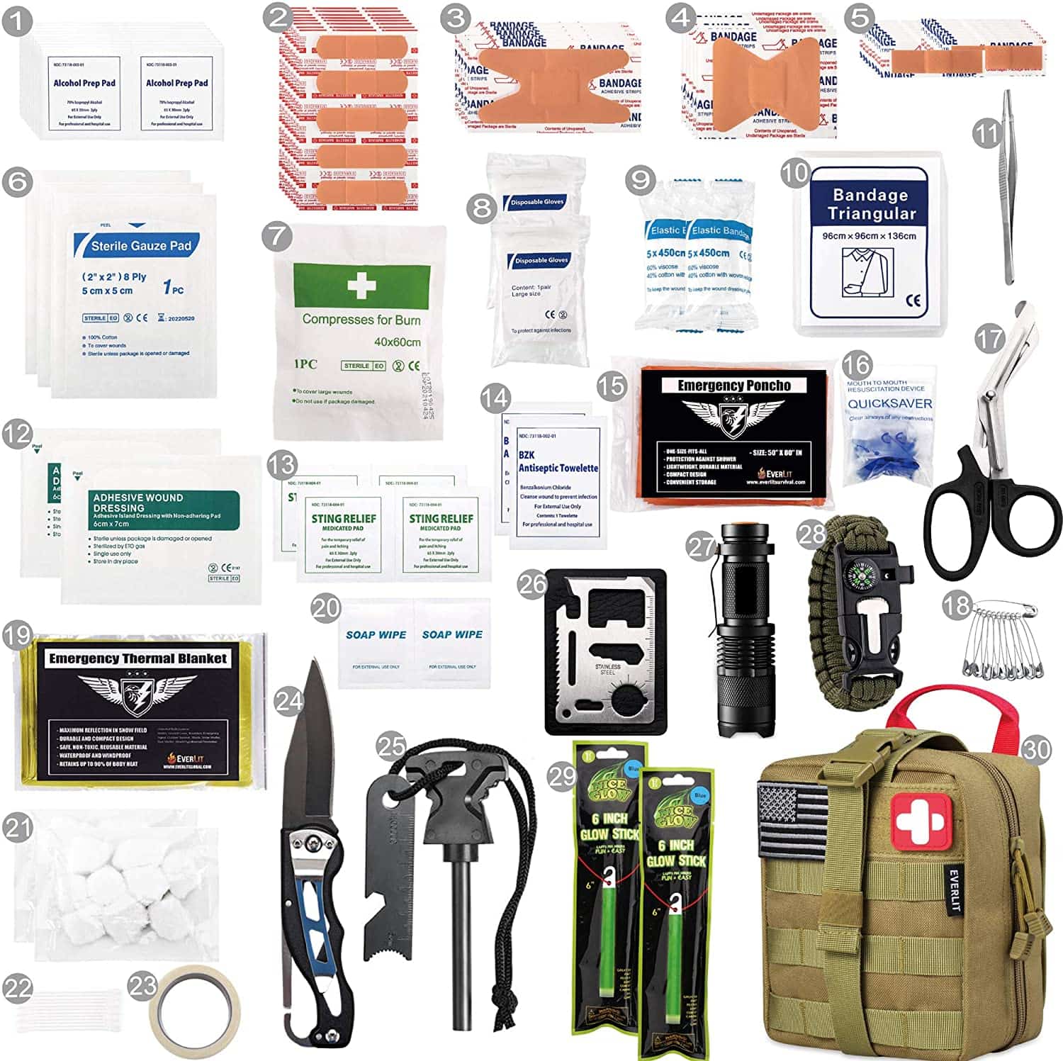 Air a dhealbhadh gu sònraichte le seann shaighdearan armachd na SA, deuchainn achadh le EX- Army Sergent, air a dhealbhadh gus deagh ullachadh a dhèanamh dhut ann an suidheachadh èiginneach. Bidh an cromag a ’cothlamadh 241 Solarachadh Ciad Chobhair PCS le 9 Gear Survival cumhachdach a-steach do inneal èiginn Must-Have EDC.