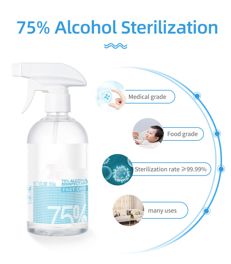 75% deoch làidir, ìre sterilization 99.99%. Bidh dòrtadh dì-ghalarachadh gu h-èifeachdach a ’marbhadh iomadh seòrsa bacteria. Dhearbh deuchainnean gu bheil marbhadh èifeachdach làmhan, ceithir roinnean cumanta, sàbhailte.